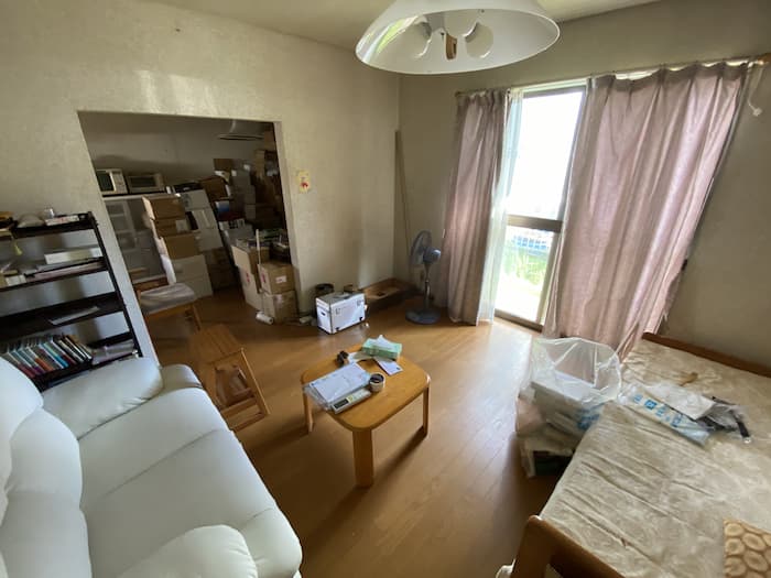 室内は残置物がかなりあって、荷物がたくさん。相続物件で、現在は息子さんが所有しているようでした。