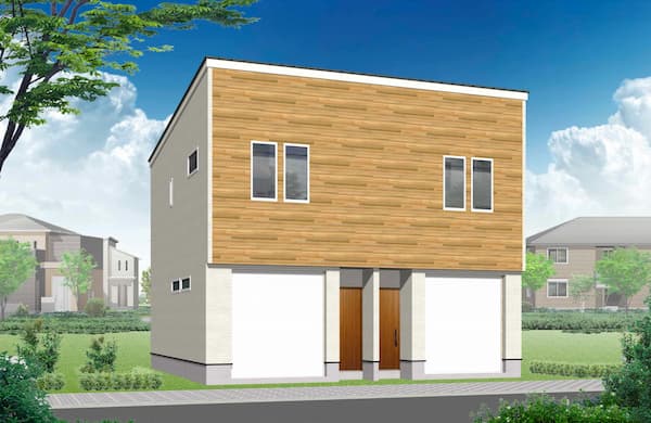 3棟目新築ガレージハウスが5月中旬に上棟しました。また1LDKですが、対面キッチン・居室広め・各世帯駐車場2台・一坪風呂など、2棟目の反省を活かした仕様になっています。