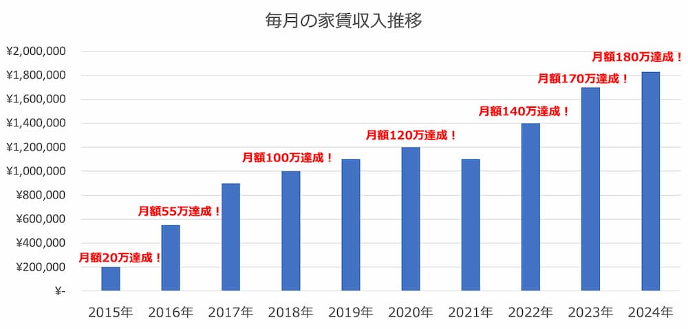 今年は毎月の家賃収入が180万円ほどになる見込みです。ペリカンはこれを20世帯弱で達成しているところに、最大の特徴があると考えています。
