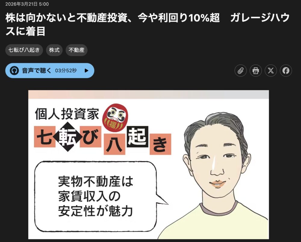 私の10年間(2015年〜2025年)の不動産投資遍歴を、日経ヴェリタスさんの名物コラム「七転び八起き」にてご掲載いただきました。