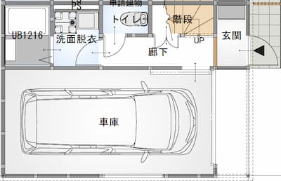 また車庫幅が狭いので、これで建築すると、おそらく大型車だと車の左右ドアが開きづらいと思います。ガレージハウスの難しいところは、工務店側でこういう使い勝手を提案してくれるノウハウが少ないところだと思います。