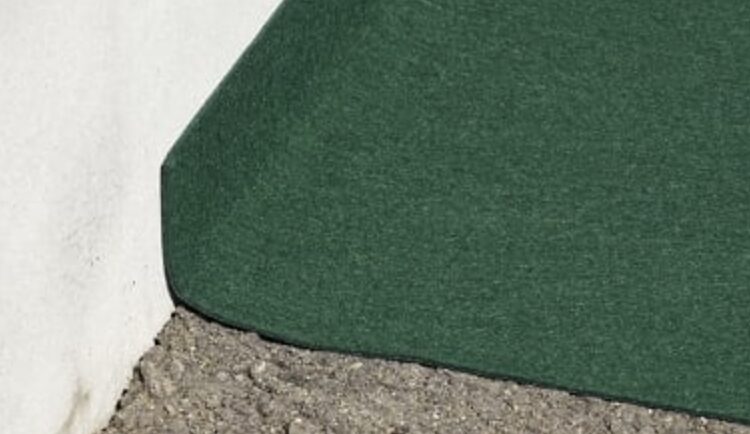 基礎や塀の立ち上がり部分は、5センチほど防草シートを垂直にして、その上からテープを貼っていきます。